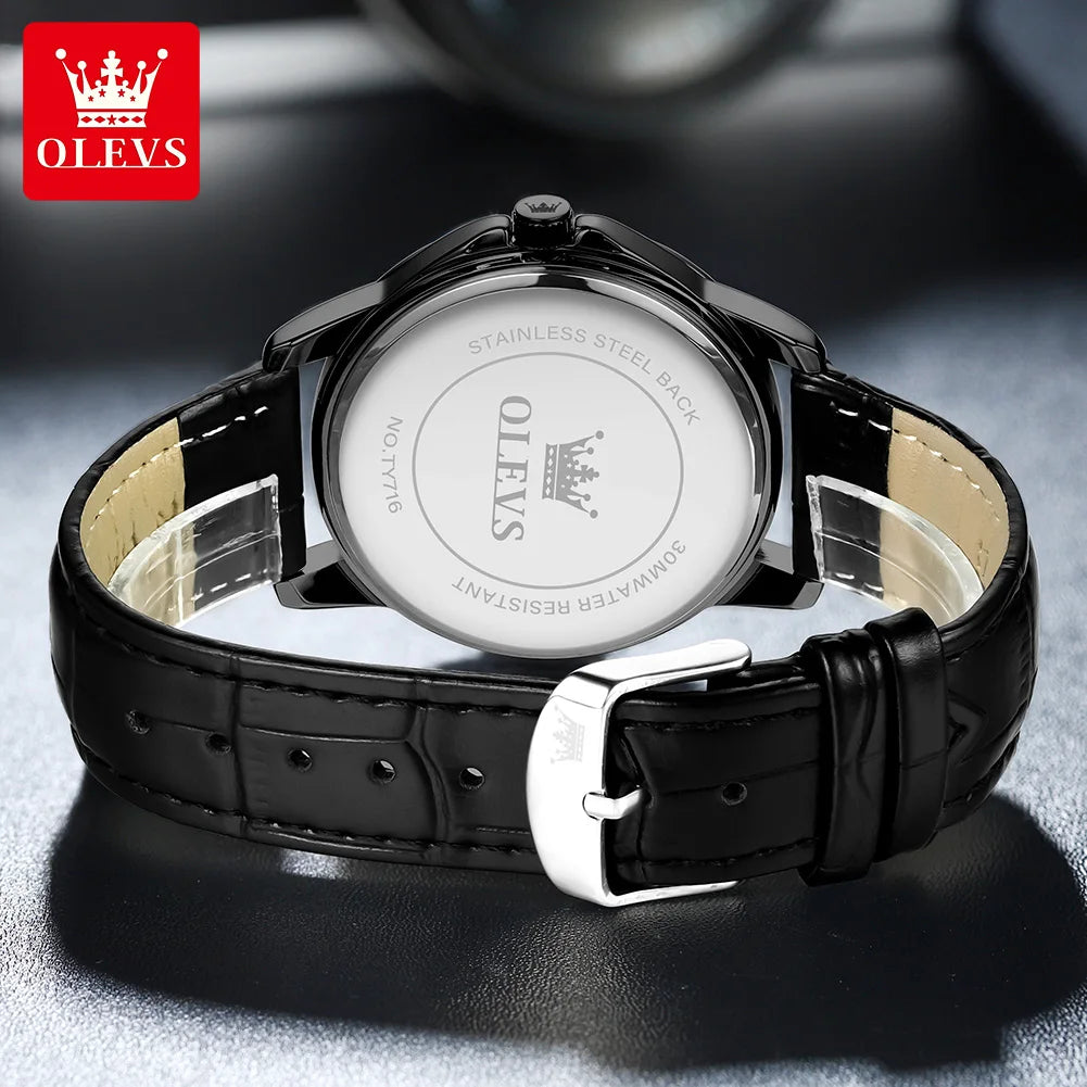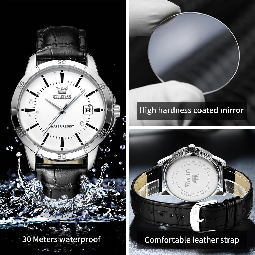 OLEVS Herrenuhr, modisch, Lederarmband, wasserdicht, Quarzuhr für Herren, schlichter Kalender, Herren-Armbanduhr, exklusiv, neu